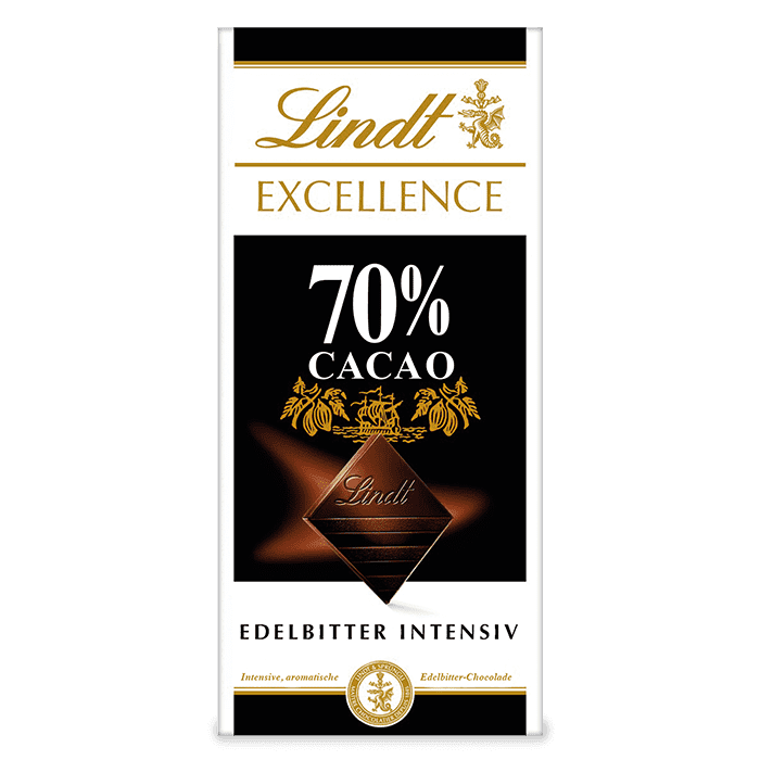 EXCELLENCE 70% ist eine Edelbitter-Chocolade mit unvergleichlich zartem Schmelz. Klassischer Edelbitter-Genuss, abgerundet mit ein