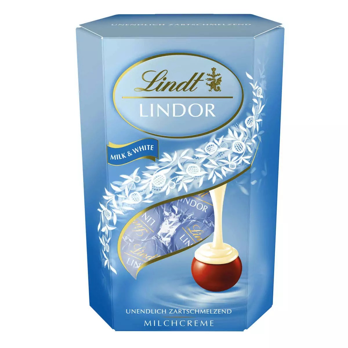 Lindt Vollmilch Schokolade und feiner Milchcrème-Füllung.